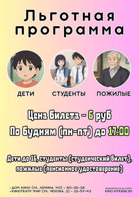 Отличные новости для наших гостей! В кинотеатрах Витебска действуют специальные цены – ходить в кино стало еще приятнее!