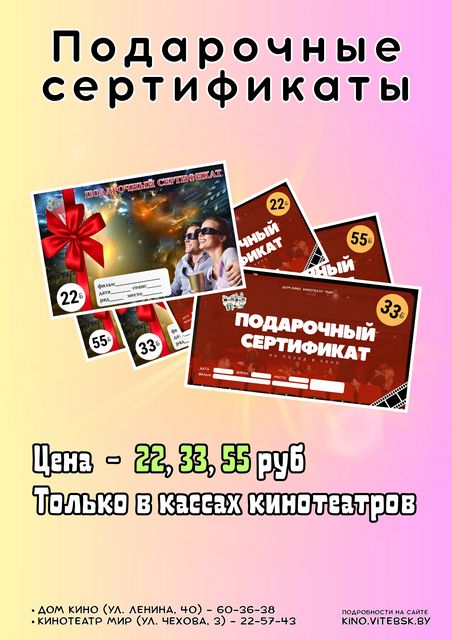 друзьям, коллегам с нашими подарочным и сертификатами в кино!